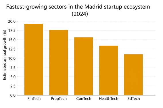 - The FinTech sector in the Community of Madrid has grown at rates of more than 20% per year since 2019. Source: madrid+d fintech